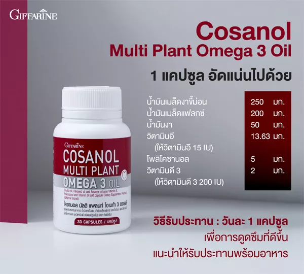 ผลิตภัณฑ์เสริมอาหาร น้ำมันงาขี้ม่อน, น้ำมันเมล็ดแฟลกซ์ และน้ำมันงา ผสมวิตามินอี, โพลิโคซานอล และวิตามินดี ชนิดแคปซูลนิ่ม (ตรา กิฟฟารีน)