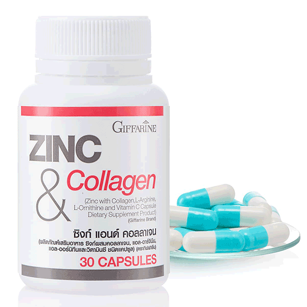 ผลิตภัณฑ์เสริมอาหาร ซิงค์ผสมคอลลาเจนแอล-อาร์จินินแอล-ออร์นิทีนและวิตามินซี ชนิดแคปซูล (ตรา กิฟฟารีน)