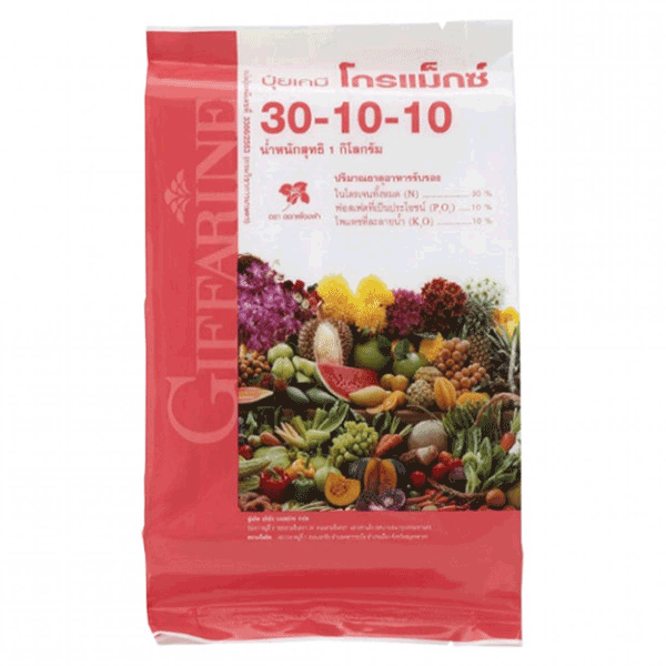 30-10-10 "สูตรไนโตรเจนสูง เร่งต้น ใบ เถา แตกยอด" ใช้ในระยะดึงยอด แตกกอ สร้างใบให้มีขนาดใหญ่ เหมาะสำหรับระยะแรกของการเจริญเติบโต