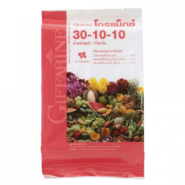 30-10-10 "สูตรไนโตรเจนสูง เร่งต้น ใบ เถา แตกยอด" ใช้ในระยะดึงยอด แตกกอ สร้างใบให้มีขนาดใหญ่ เหมาะสำหรับระยะแรกของการเจริญเติบโต