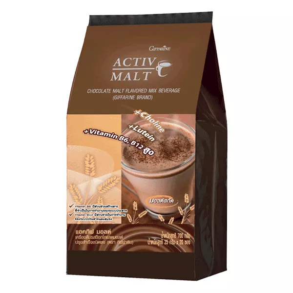 วิธีชง : แอคทิฟ มอลต์ 1 ซอง (35 กรัม) ต่อนาร้อน 150 มล. คนให้เข้ากัน